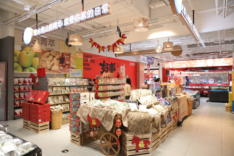 人们在一排排汇聚了天南海北风味的货架前细细挑选,非遗手打水晶年糕、大兴安岭的内蒙古大米、各色菌菇、黄海虾干……这里宛如一个浓缩的“中国风味博物馆”,为那顿年度最重要的团圆饭默默准备着。