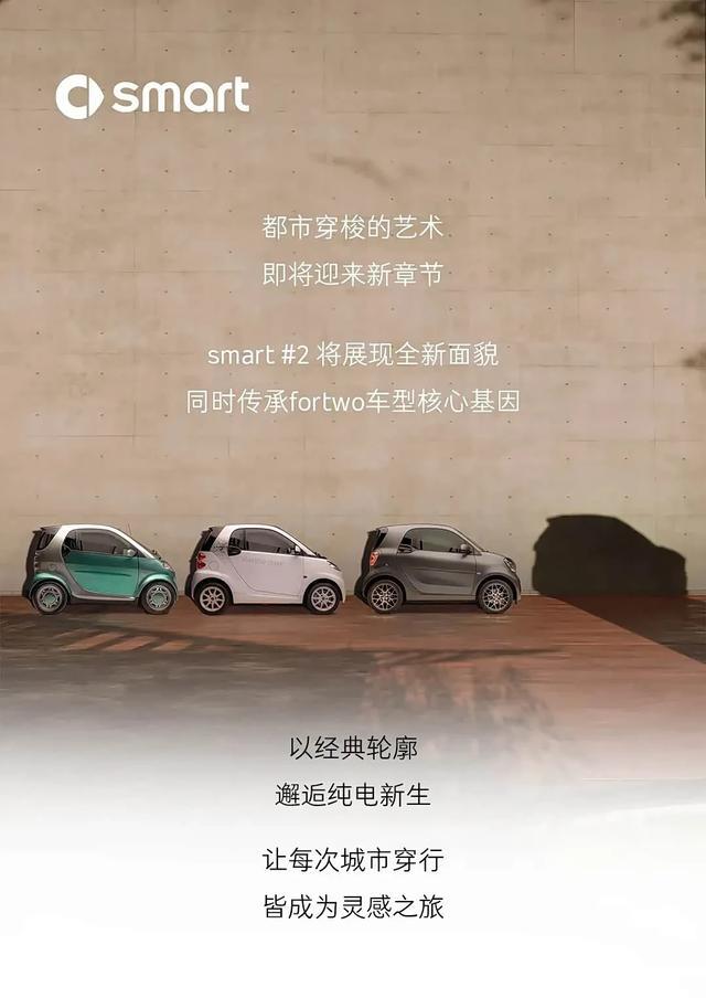 smart精灵#2在初代smart fortwo经典车型上迭代升级,新车定位一款全电动双门双座车型。车辆将保留smart fortwo四轮四角、后轮驱动的布局,但会采用全新的外观及内饰设计,前期将推出双门硬顶版车型,后续还可能推出敞篷版进一步丰富选择空间。同时,预计该车将会采用容量为30kWh左右的电池组。随着smart精灵#6 EHD和smart精灵#2的推出,其将进一步丰富smart品牌产品矩阵,未来将与smart精灵#1、#3、#5和#6共同构成品牌产品新阵容。