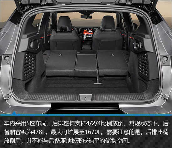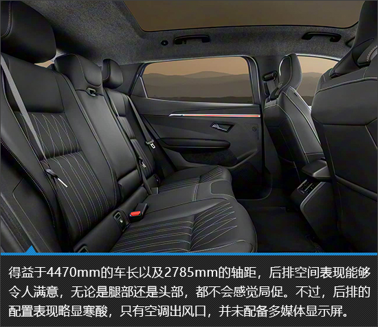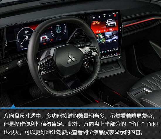 内饰布局相对比较传统规整,设计风格明显倾向“实用主义”。虽然没能营造出很强的科技感,但是配置表现还是达到了同级别主流水平,除了前文提到过的全液晶仪表以及大尺寸中控屏外,三菱Eclipse Cross EV还搭载电变色全景天幕、氛围灯以及哈曼卡顿音响系统。车内空间比较宽敞,并且后备厢容积也说得过去,足以应对一般的家用场景。